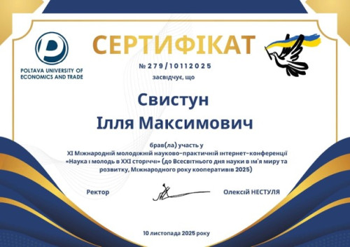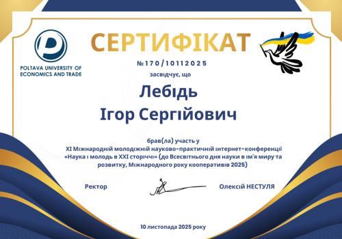 10 листопада 2025 року на базі ПУЕТ відбулася ХІ Міжнародна молодіжна науково-практична інтернет-конференція «Наука і молодь в ХХІ сторіччі» (до Всесвітнього дня науки в ім'я миру та розвитку, Міжнародного року кооперативів 2025). Здобувачі освіти спеціальності 181 Харчові технології виступили зі змістовними доповідями та отримали сертифікати. Продовжуємо розвивати здібності та інженерну творчість студентів!