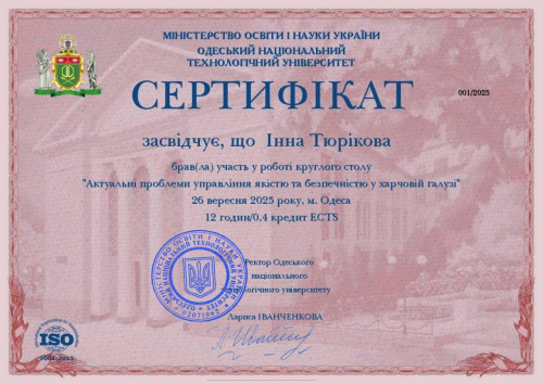26 вересня 2025 року викладачі кафедри технологій харчових виробництв і ресторанного господарства, а також здобувачі освіти – бакалаври ОП «Харчові технології і інженерія» та магістри ОП «Технологічна експертиза, якість і безпека харчової продукції» – взяли участь у круглому столі «Актуальні проблеми управління якістю та безпечністю в харчовій галузі».