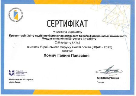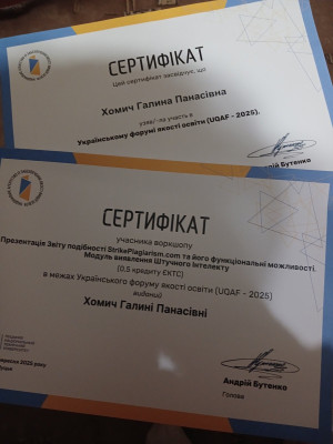В період з 17 по 18 вересня 2025 року професорка кафедри технологій харчових виробництв і ресторанного господарства Хомич Галина Панасівна була учасницею Українського форуму якості освіти UQAF-2025 року, який проходив на базі Луцького національного технічного університету, і став вагомою, ключовою подією для системи якості вищої освіти України. Форум був майданчиком, де одночасно зібралося понад сімсот учасників (освітян, експертів, роботодавців, міжнародних партнерів, представників міністерств, місцевої та обласної влади), які представляли майже 200 українських та міжнародних освітніх установ. На форумі піднімалися головні питання сьогодення про те, як зробити освіту якісною, сучасною й такою, що відповідає потребам економіки та суспільства.