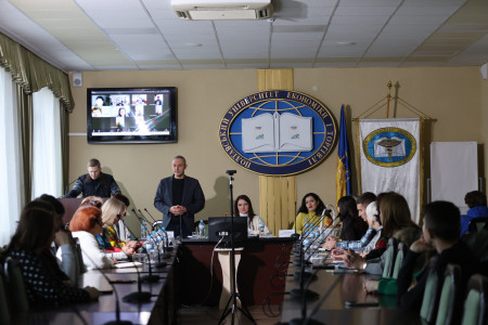 У рамках кредитної мобільності для учасників була організована зустріч з відділом студентської документації. Литовські колеги представили можливості електронного деканату, розповіли про особливості роботи зі студентами і основні виклики сучасної освіти. Серед них – небажання студентів вчитися в університеті одразу після школи (середній рік вступників наближається до 30 років); важкий процес переходу з онлайн на офлайн навчання, зменшення кількості бажаючих вступати на інженерно-технічні спеціальності.